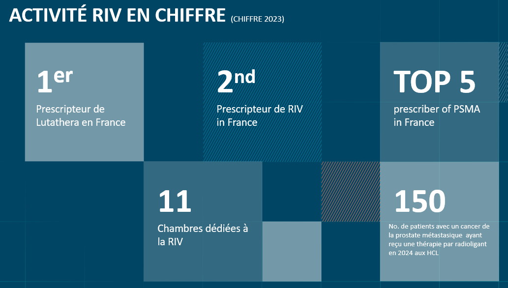 Les HCL sont dans le TOP 5 national en termes de nombre de traitements RIV réalisés, toutes indications et tous médicaments radiopharmaceutiques confondus.