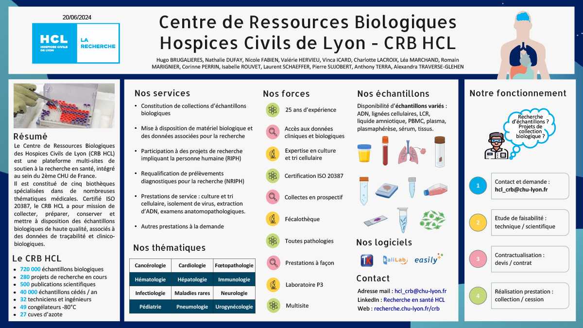 Infographie Activités et services du Centre de Ressources Biologiques Body Le CRB est une plateforme multi-sites de soutien à la recherche en santé. Ce poster illustre leurs activités et services. Image Voir aussi Centre de Ressources Biologiques des HCL - Rubrique Présentation du Centre de Ressources Biologiques des HCL - Document Dernière mise à jour le : mar 16/07/2024 - 10:03
