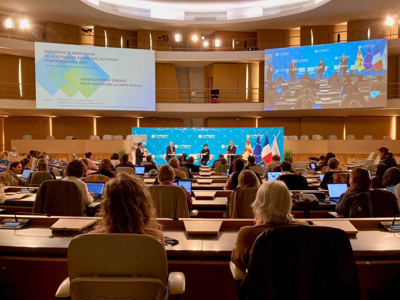 Une session à trois voix avec Mme Armelle Dion, directrice de l’innovation, M. Alexandre Pachot, directeur de la recherche en santé et le Pr Sylvain Rheims, vice-président HCL de la commission recherche et innovation HCL-UCBL1, a permis de présenter la nouvelle stratégie recherche, en lien avec le projet stratégique HCL 2035 :