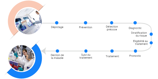 Roche est impliqué dans tout le parcours de soin, permettant aux chercheurs de proposer des projets variés et concernant toutes les étapes du parcours.