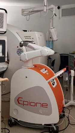 Le robot Epione, grâce à un bras articulé guidé par scanner peut cibler avec une très grande précision les zones tumorales, permettant ainsi aux praticiens de réaliser des ablations tumorales percutanées sûres et efficaces, un traitement peu invasif dans lequel une ou plusieurs aiguilles sont insérées à travers la peau jusqu'à la tumeur pour la détruire. Il est pour l’instant indiqué dans le traitement des tumeurs abdominales et pulmonaires, et les Hospices Civils de Lyon ont notamment fêté en décembre 2023 la 100ème intervention utilisant le robot Epione.