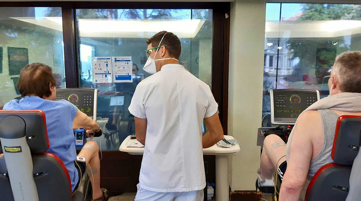 Lors de la première vague, quatorze patients infectés par le virus Sars-Cov-2, pris en charge à l’hôpital Henry Gabrielle, avaient été inclus dans l’expérimentation. Des hommes en surpoids de 38 à 72 ans, qui ont tous développé une forme sévère de la maladie ayant nécessité une hospitalisation en réanimation, de 21 jours en moyenne, avec mise en place de ventilation et de sédation. Des patients que le kiné a encouragés, soutenus et rééduqués pendant plusieurs semaines sur le chemin du rétablissement dès leur entrée à l’hôpital.